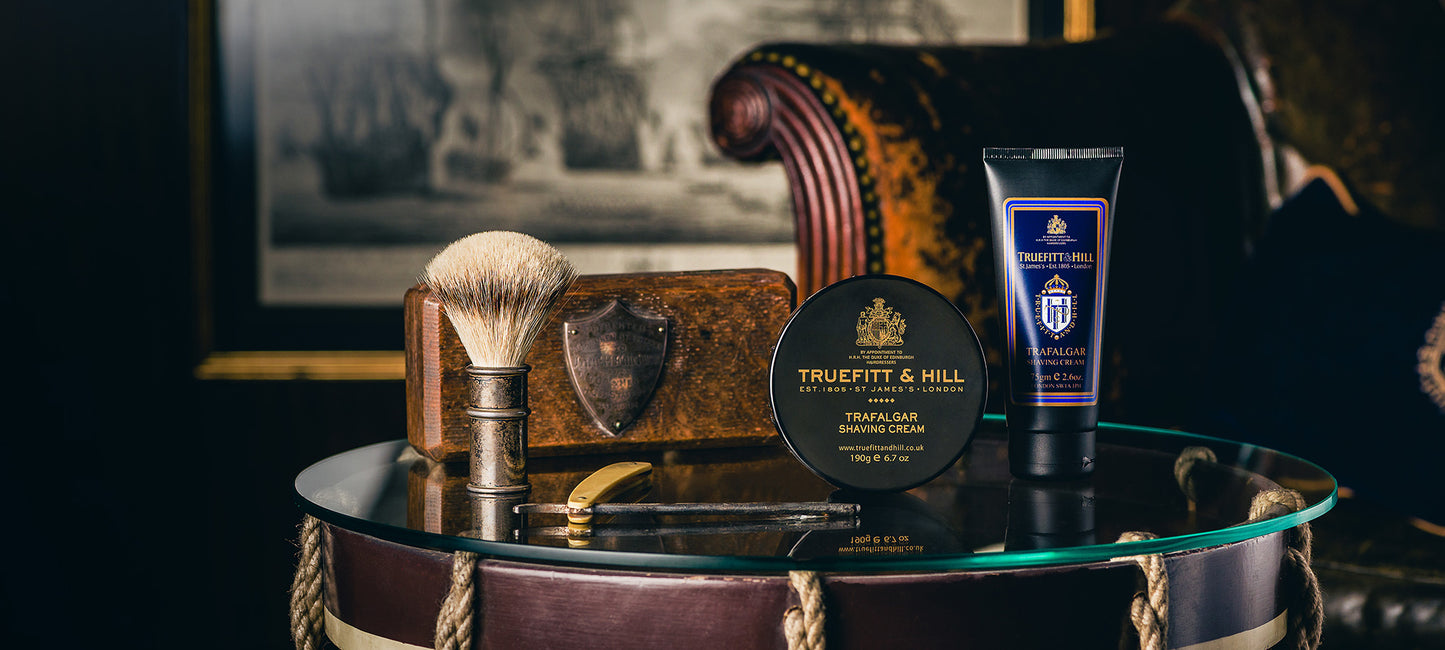 Revealing its distinguished heritage, our Trafalgar Cologne delightfully blends top notes of lemongrass, bergamot and orange with a spicy heart of nutmeg, lavender and clove. The refined base notes of amber, wood and musk compliment and ground this exceptional fragrance. For more on the scent profile, see our Trafalgar Cologne.
